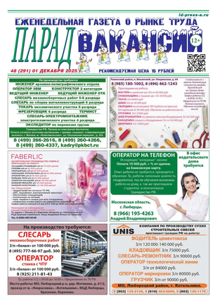 ЕЖЕНЕДЕЛЬНАЯ ГАЗЕТА О РЫНКЕ ТРУДА ПАРАД ВАКАНСИЙ