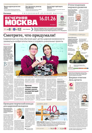 «Вечерняя Москва» — ежедневная российская вечерняя газета, старейшее из вечерних изданий в России, учрежденное в 1923 году. Выходит пять дней в неделю, кроме субботы и воскресенья. Отличается тем, что рассказывает о событиях еще не завершившегося дня. Оперативно освещает хронику и особенности жизни Москвы, охватывает все слои общества и большинство профессиональных и возрастных групп читателей.Издание представлено тремя выпусками – утренним ежедневным, вечерним (выходит три раза в неделю), еженедельным (выходит по четвергам).