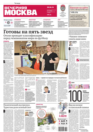 «Вечерняя Москва» — ежедневная российская вечерняя газета, старейшее из вечерних изданий в России, учрежденное в 1923 году. Выходит пять дней в неделю, кроме субботы и воскресенья. Отличается тем, что рассказывает о событиях еще не завершившегося дня. Оперативно освещает хронику и особенности жизни Москвы, охватывает все слои общества и большинство профессиональных и возрастных групп читателей.Издание представлено тремя выпусками – утренним ежедневным, вечерним (выходит три раза в неделю), еженедельным (выходит по четвергам).