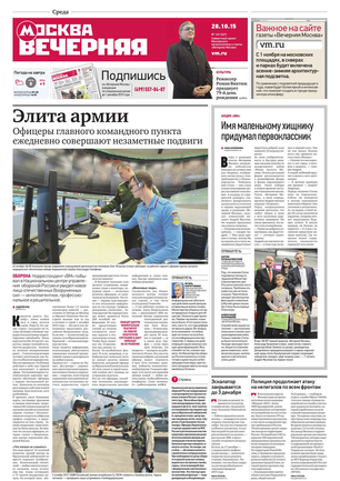 «Вечерняя Москва» — ежедневная российская вечерняя газета, старейшее из вечерних изданий в России, учрежденное в 1923 году. Выходит пять дней в неделю, кроме субботы и воскресенья. Отличается тем, что рассказывает о событиях еще не завершившегося дня. Оперативно освещает хронику и особенности жизни Москвы, охватывает все слои общества и большинство профессиональных и возрастных групп читателей.Издание представлено тремя выпусками – утренним ежедневным, вечерним (выходит три раза в неделю), еженедельным (выходит по четвергам).