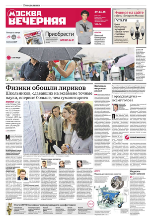 «Вечерняя Москва» — ежедневная российская вечерняя газета, старейшее из вечерних изданий в России, учрежденное в 1923 году. Выходит пять дней в неделю, кроме субботы и воскресенья. Отличается тем, что рассказывает о событиях еще не завершившегося дня. Оперативно освещает хронику и особенности жизни Москвы, охватывает все слои общества и большинство профессиональных и возрастных групп читателей.Издание представлено тремя выпусками – утренним ежедневным, вечерним (выходит три раза в неделю), еженедельным (выходит по четвергам).