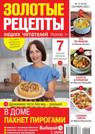 Популярный кулинарный журнал удобного формата, созданный исключительно на основе писем читателей — профессиональных поваров, кондитеров и домашних кулинаров. Все рецепты подкреплены качественными фотографиями блюд и их авторов, что позволяет заранее оценить конечный результат. Часть рецептов опробована на редакционной кухне, о чем свидетельствует фирменный знак на фотографиях блюд — «Экспертиза. Проверено: вкусно!».