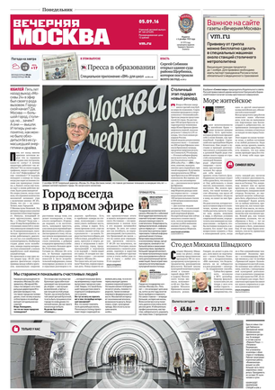 «Вечерняя Москва» — ежедневная российская вечерняя газета, старейшее из вечерних изданий в России, учрежденное в 1923 году. Выходит пять дней в неделю, кроме субботы и воскресенья. Отличается тем, что рассказывает о событиях еще не завершившегося дня. Оперативно освещает хронику и особенности жизни Москвы, охватывает все слои общества и большинство профессиональных и возрастных групп читателей.Издание представлено тремя выпусками – утренним ежедневным, вечерним (выходит три раза в неделю), еженедельным (выходит по четвергам).