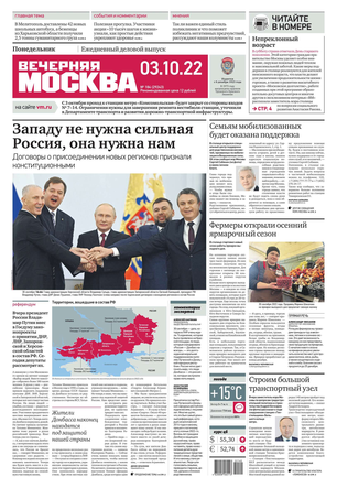 «Вечерняя Москва» — ежедневная российская вечерняя газета, старейшее из вечерних изданий в России, учрежденное в 1923 году. Выходит пять дней в неделю, кроме субботы и воскресенья. Отличается тем, что рассказывает о событиях еще не завершившегося дня. Оперативно освещает хронику и особенности жизни Москвы, охватывает все слои общества и большинство профессиональных и возрастных групп читателей.Издание представлено тремя выпусками – утренним ежедневным, вечерним (выходит три раза в неделю), еженедельным (выходит по четвергам).