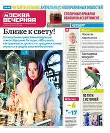 «Вечерняя Москва» — ежедневная российская вечерняя газета, старейшее из вечерних изданий в России, учрежденное в 1923 году. Выходит пять дней в неделю, кроме субботы и воскресенья. Отличается тем, что рассказывает о событиях еще не завершившегося дня. Оперативно освещает хронику и особенности жизни Москвы, охватывает все слои общества и большинство профессиональных и возрастных групп читателей.Издание представлено тремя выпусками – утренним ежедневным, вечерним (выходит три раза в неделю), еженедельным (выходит по четвергам).