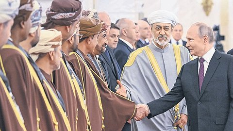 В Георгиевском зале в один ряд выстроились члены двух делегаций. Когда до появления Владимира Путина и Хейсама бен Тарика Аль Саида оставалось несколько минут, к строю подошел министр иностранных дел России Сергей Лавров. Он хотел поскорее пройти к своему месту, но несколько членов оманской делегации бросились к нему, чтобы поздороваться. Тут уж ему пришлось здороваться со всеми, в том числе и с коллегами из российской делегации. Так он проверил на прочность рукопожатия каждого, кто в строю, и почти всех заставил немедленно смеяться. Двигался он не по протоколу, а в противоположном направлении, ибо направлялся к своему месту во главе списка, так что последние стали первыми.